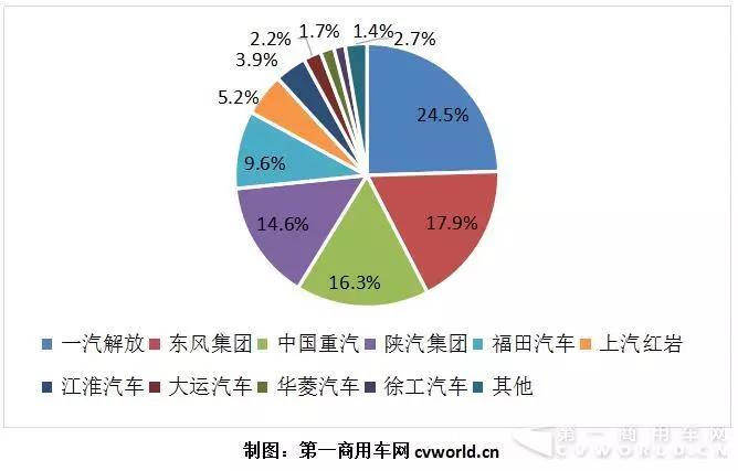 從市場的競爭格局來看,一汽解放繼續(xù)穩(wěn)坐“老大哥”的位置,6月份單月和今年累計都保持行業(yè)第一。其6月份銷售重卡2.6萬輛,同比增長29%;1-6月累計銷售16.43萬輛,同比增長25%,市場份額24.5%。第二名東風重卡6月份銷售2萬輛,同比上漲6%;今年上半年累計銷售11.98萬輛,同比增長8%,市場占有率為17.9%。