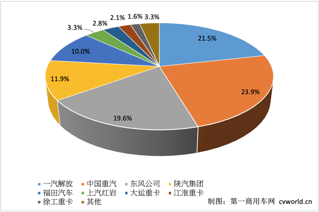 上汽紅巖今年4月份銷(xiāo)售重卡約1600輛,2022年1-4月累計(jì)銷(xiāo)售重卡0.92萬(wàn)輛,市場(chǎng)份額為3.3%,繼續(xù)保持行業(yè)前六。大運(yùn)重卡4月份銷(xiāo)車(chē)1590輛,1-4月累計(jì)銷(xiāo)售7781輛,市場(chǎng)占有率為2.8%,份額上升了1.4個(gè)百分點(diǎn)。江淮汽車(chē)4月份銷(xiāo)售重卡約900輛,1-4月累計(jì)銷(xiāo)售0.59萬(wàn)輛,市場(chǎng)份額2.1%。徐工重卡今年4月份銷(xiāo)車(chē)1032輛,躋身行業(yè)第八;1-4月累計(jì)銷(xiāo)售4390輛,市場(chǎng)占有率為1.6%,保持重卡行業(yè)第九,份額上升了0.3個(gè)百分點(diǎn)。